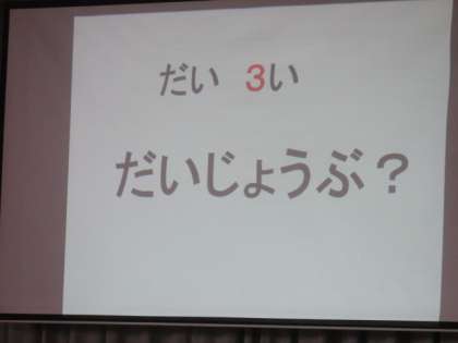 最初に書記局がとった《いわれて嬉しかった言葉》アンケートの結果発表があり、第1位は『ありがとう』でした。