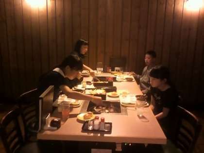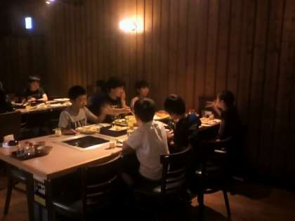 宿泊学習2日目。ランチバイキングを楽しんでいます。