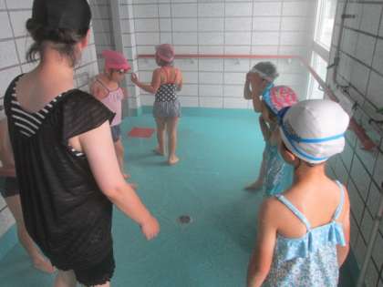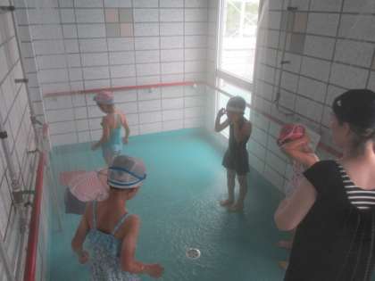 最後もシャワーを浴びて、無事、初水泳学習を終えました。