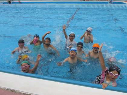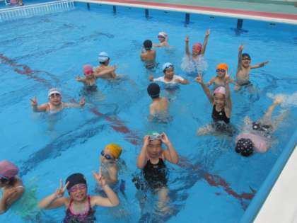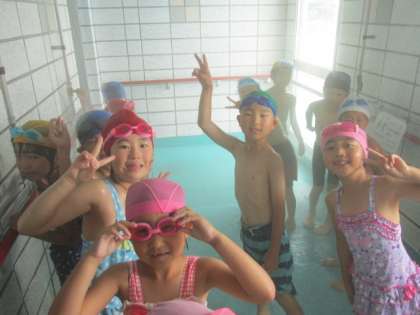 たっぷり泳いでシャワーを浴びて2年生の初水泳学習が終わりました。