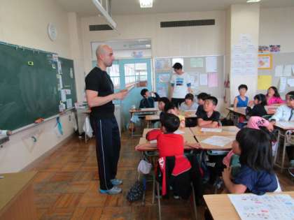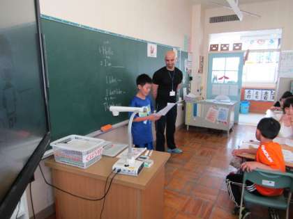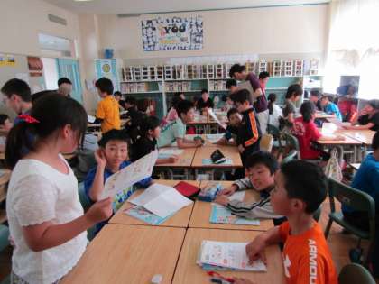 今日は、シーザー先生に3・4・6年生の授業6時間を支援してもらいました。