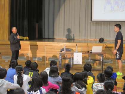 終わりに児童代表から、『夢への挑戦』や『ありがとう』の大切さがわかりましたとお礼を伝え、楽しく、ためになった夢道教室を終えました。三浦 拓選手、恵庭青年会議所の皆様、本当にありがとうございました。