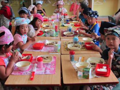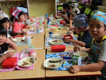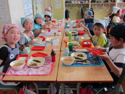 1年1組の給食の様子です。
