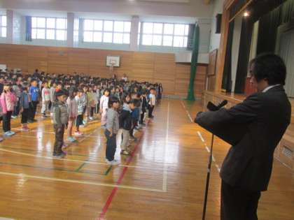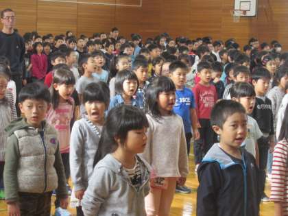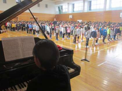 本日より後期がスタートしました。1時間目に行った後期始業式の様子です。最初に校歌を元気に歌いました。