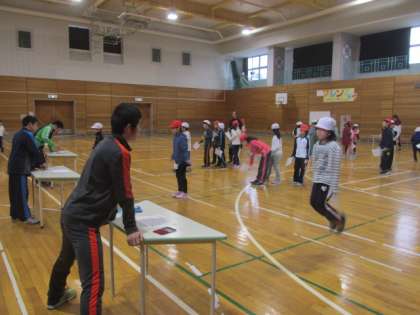 今日から体育委員会が縄跳び検定を始めました。中休みは1〜3年生、昼休みは4〜6年生がチャレンジします。