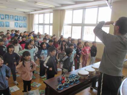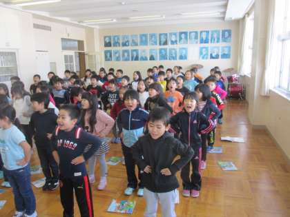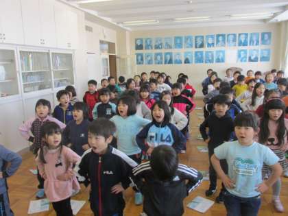 1年生の合同音楽、最初に行う発声練習の様子です。