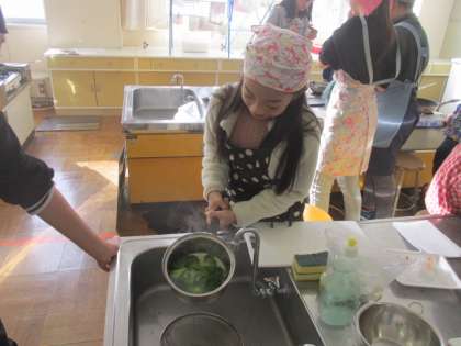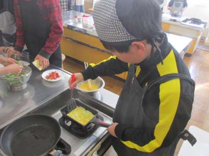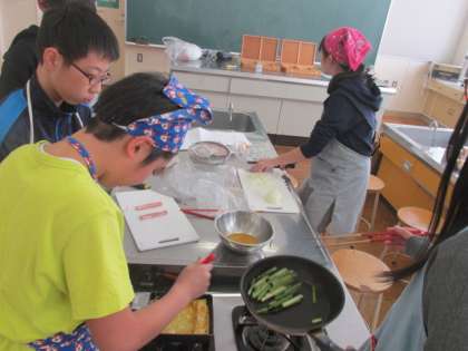 6年生の家庭科調理実習、お弁当つくりの様子です。