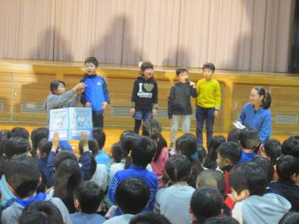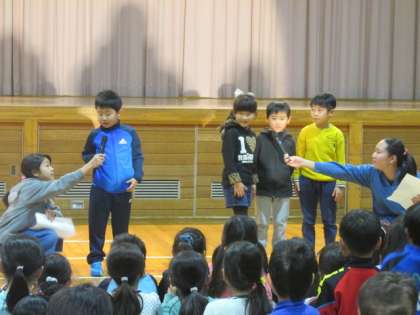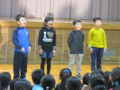 1組目は、1年《夢をかなえてドラえもんチーム》の元気な歌の発表でした。