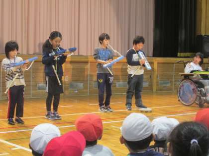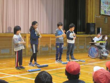 4組目は、あさひ学級全員《あさひファイブ》による器楽演奏3曲の発表でした。とてもとても上手な演奏でした。