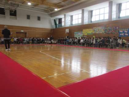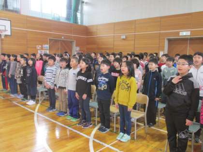 3時間目に行った4・5・6年生による卒業式全体練習1回目の様子です。