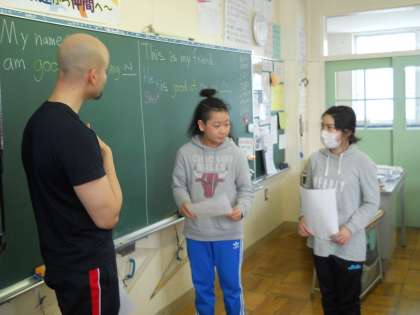 今年度のALTシーザー先生の来校日もあと2回となりました。今日は、3・5・6年の6学級の支援をしてもらいました。