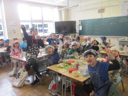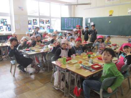 元気な2年生の給食の様子です。