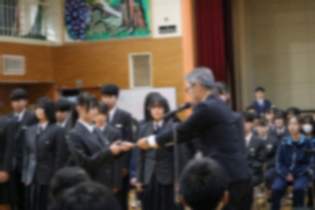 10月20日(月)、令和7年度後期認証式を行いました。生徒会役員や各委員会の委員長、そして各委員の代表者が、校長先生から認証状を受け取り、新たな責任を胸に誓いを立てました。緊張の中にも「これから頑張ろう」という強い決意が感じられ、会場には温かな雰囲気が広がりました。新しいリーダーたちを中心に、みんなで協力し合いながら、さらに明るく活気ある学校をつくっていってほしいと思います。