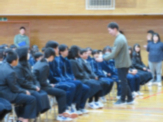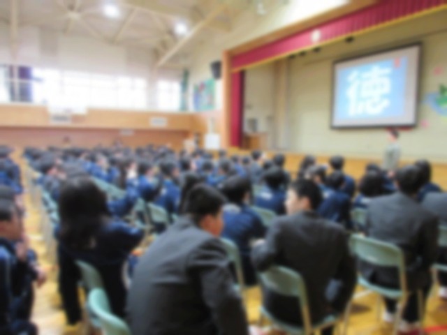 道徳推進教師による全校集会形式での学びを行いました。葛藤を含むストーリーをもとに、生徒一人ひとりが「自分だったらどうするか」と考えながら向き合いました。さらに、仲間の多様な考えに触れることで視野を広げ、自分自身の価値観を見つめ直す機会となりました。物事を多面的・多角的に捉え、人としてのよりよい生き方について、思考を深める時間となりました。