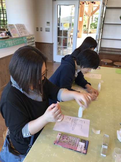 ゆにガーデンでポプリ額やルームスプレーの手作り体験、その後ランチバイキングなど、とても楽しく参加しました。