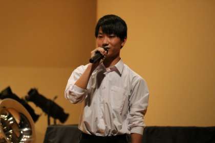 本日はお忙しい中、私たちの定期演奏会におこし下さいまして本当にありがとうございます。先日行われた吹奏楽コンクール札幌地区大会では念願の金賞を受賞することができました。今年は、顧問の先生もかわり、皆で新しい挑戦をしようということでB編成に出場し、自分たちのできる限りの力で一生懸命がんばり、大切な日々を過ごすことができました。このようにがんばってくることができたのも、先生の指導や父母の方々の支えがあってのことで、本当に感謝しています。今日は皆様に、その感謝の気持ちを込めて、部員一同、精一杯演奏します。まだまだ未熟な演奏ですが、どうぞ最後までごゆっくりとお聴き下さい。 吹奏楽部部長 松岡 唯人