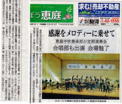 9.26Wed.吹奏楽部定演 千歳民報掲載記事