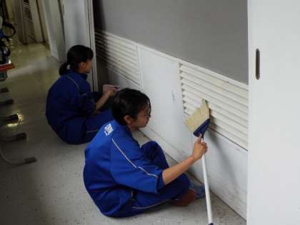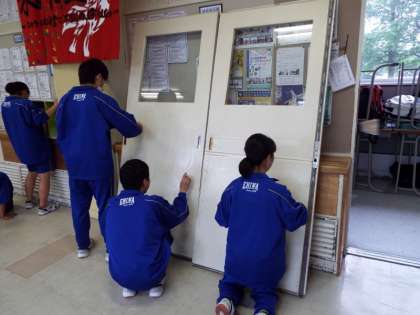 教室の扉を外して掃除をしたり、がらりを拭いたり、普段できないようなところを一生懸命やってくれています。
