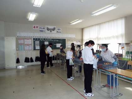 例年より品目を減らし、手渡しをせずに生徒が自分でとる、という方法でバザーを行いました。