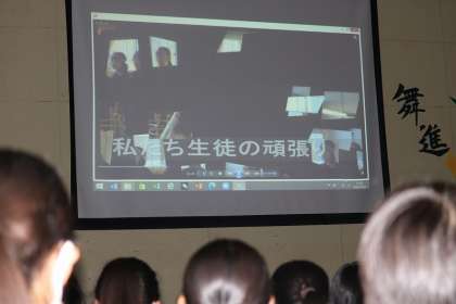 表彰の後は各学級の今までの取り組みを、写真をスクリーンに映して振り返りました。