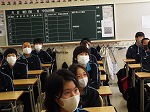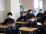 生徒会代表 テレビ放送を真剣に見て終業式に参加している生徒たち