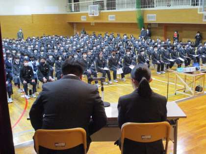 本日6時間目、後期の生徒総会が体育館で行われました。今後の生活にも関わることなので、たくさんの学級から質問や意見が出され、意義深い交流の場となりました。誰もが真剣に取り組んできたからこそ、こんな活発な場になったんだと実感します。すばらしい集会でした。