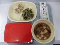 今日の給食は、ご飯、豆腐の中華煮、焼き餃子、大根のごま酢和えです。主食に多く含ま...