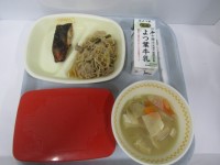 今日の給食は、ご飯、味噌けんちん汁、ほっけの生姜焼き、豚肉と白滝のしぐれ煮です。...