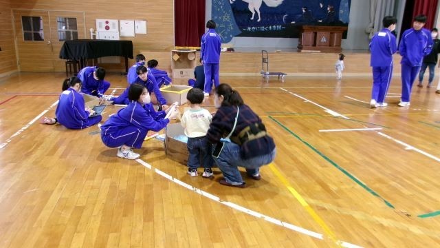 15日(月)と16日(火)、本校体育館にて3年生家庭科の「保育実習」を行いました。