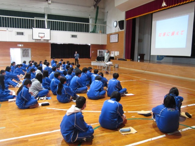 18日(水)の3~4校時に2学年「防災教室」が行われました。4月に修学旅行が行われますが、東日本大震災によって大きな被害をうけた地域への旅行となるため事前学習となります。