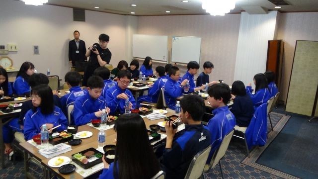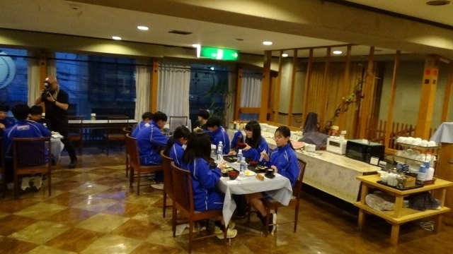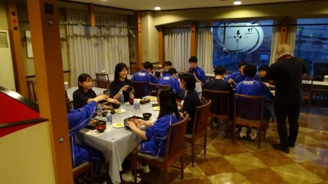 自主研修から無事全班帰還。お風呂に入ってさっぱりした後は夕食をいただきました。