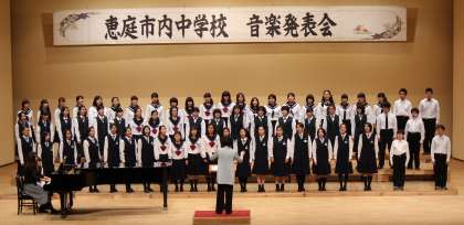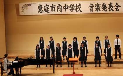 市民会館で恵庭市内中学校音楽発表会が行われました。文化祭で最優秀賞を受賞した3年A組と合唱部が出場し、ホール全体に響き渡る素晴らしい合唱を披露してきました。