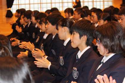 10.20.Thu 生徒会役員選挙立会演説会 公開日 2016/10/21 更新日 2016/10/21 お知らせ 6時間目に後期生徒会役員選挙の立会演説会が行われました。 生徒会役員:定数7名に対し9名が立候補 各委員会委員長:定数7名に対し8名が立候補しました。 立候補者一人一人が自分の抱負・公約等を全校生徒に訴えました。 選ぶ側の生徒たちも真剣な表情で聞いていました。