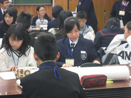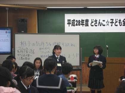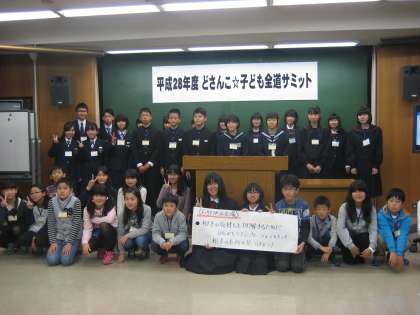 メイン会場(道立教育研究所)と地区会場である全道数十カ所の道立学校をネット中継で結び、ライブ映像やツイッター等を活用して、児童生徒がリアルタイムで、いじめのない明るい学校づくりを実現するための取り組み等を話し合い、協議しました。各地区で「どさんこ☆子ども全道サミット行動宣言」を作成し、各学校でいじめ根絶に向けた実践を行うことを約束しました。