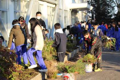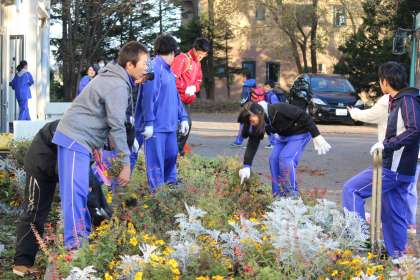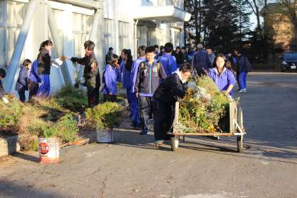 10.24.Mon 学校花壇撤去作業 公開日 2016/10/24 更新日 2016/10/24 お知らせ 10月24日(月)保健整備委員と各学級からのボランティア生徒で学校花壇の撤去作業を行いました。肌寒い中、全員一生懸命に作業に取り組んでいました。