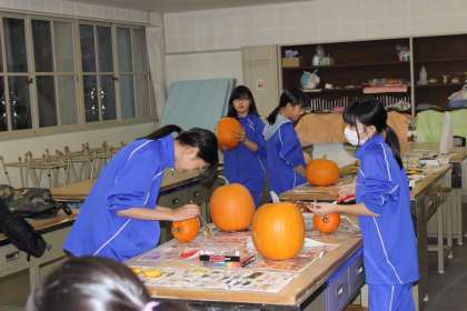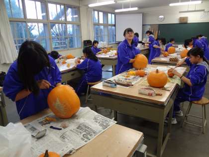 10月29日(土)「花ロードえにわ」で開催される「えにわハッピーハロウィン」(恵庭青年会議所主催)で飾られる、カボチャのランタンづくりに創作部が取り組みました。