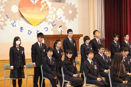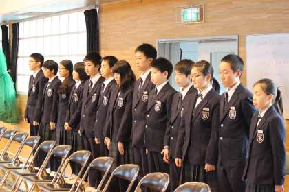 10.28.Fri 後期生徒会役員・学級役員認証式 公開日 2016/10/28 更新日 2016/10/28 お知らせ 後期生徒会がスタートしました。 新役員が各委員の氏名を呼称すると、返事をし起立します。 一人一人の大きな声がやる気を表していました。