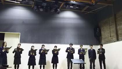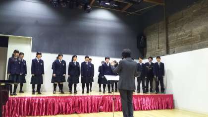 3.28.Tue 合唱部・OBOG会合同コンサート 公開日 2017/03/29 更新日 2017/03/29 お知らせ 1・2年合唱部8名と今年卒業した中学3年生から高校3年生までのOB・OG10名との合同演奏会を島松の夢創館で行いました。卒業生・保護者・地域の方を前に素晴らしい歌声を響かせました。