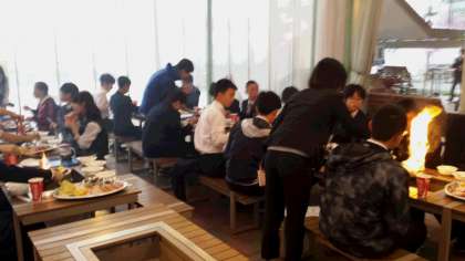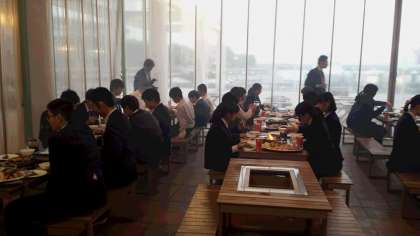 写真は、夕食の八景島のようすです。これもまた、訪問先の郷土を