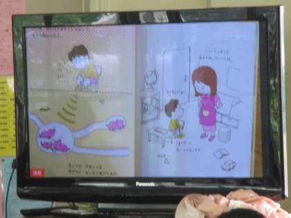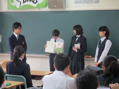 6.20読み聞かせ 公開日 2017/06/20 更新日 2017/06/20 お知らせ 図書委員会の年間活動として、朝読書のときに読み聞かせ活動を行っています。委員自ら選んだ本を紹介し、図書室利用の促進と読書活動の充実を目指しています。今回は、ICT機器などを使い、各委員が工夫して行いました。