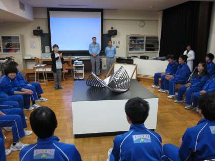 10月20日に、北海道近代美術館の学芸員お方を招いての鑑賞授業を行いました。美術館所蔵の作品を直に見たり、実際に触ったりするなどして、視覚的にも体感的にも美術に触れることができたと思います。動く魚の模型では不思議な動きを感じ取り、また運送された方の話も聞けるなど、充実した時間を過ごしていました。