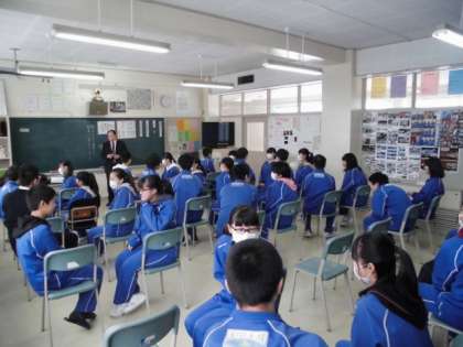 3月8日の1時間目は校長先生から卒業生への講話の時間で、2時間目は卒業生の清掃活動が行われました。