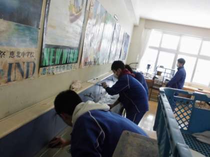 清掃活動では、今までお世話になった教室だけでなく、トイレや玄関階段、特別教室などに分かれ、いつも以上の丁寧な清掃を行いました。床拭きや手洗い場磨きなどにより、きれいな環境づくりを行いました。