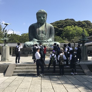 高徳院につきました。グループで計画した自主研修に取り組みます。銭洗弁財天が人気のようです。
