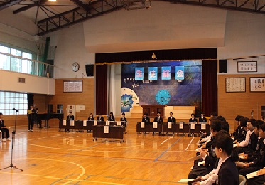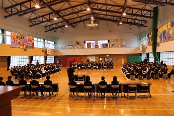 5.6校時、生徒総会が行われました。生徒会書記局、各委員会から今年度の活動方針・活動内容が提案されました。生徒会の運営や生徒の聞く態度も大変立派で、よりよい学校を全校生徒で築いていこうという意識が高まった生徒総会となりました。