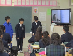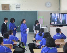 6日間にわたり、朝読書に時間に図書委員が各学級をまわって、読み聞かせを行っています。実物投影機で絵本を映し出し、2冊読んでいます。読み聞かせが終わったあとには、学級の生徒から拍手がおこっています。