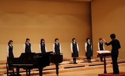 恵庭市市民会館で「第4回コーラスフェスタ♪花の街」が開催され、本校から合唱部が参加しました。きれいなハーモニーで「どじょう だじょ」「小鳥が逃げた!」「流浪の民」の3曲を歌いました。また、恵み野中学校と合同で「gifts(ギフツ)」を歌い、心に響く合唱を披露しました。