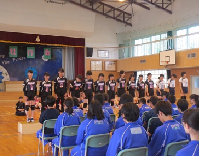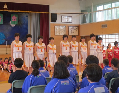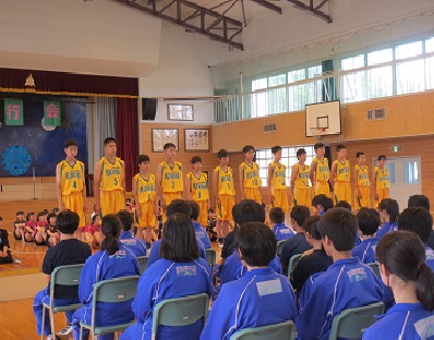 7.12管内新人戦壮行会・その1 公開日 2018/07/18 更新日 2018/07/18 お知らせ 5校時、明日、明後日に行われる管内中体連向けての壮行会が行われました。男女バスケットボール部、女子バレーボール部、男女卓球部、剣道女子個人が出場しますが、出場する各部の部長と部員一人一人から力強い抱負と円陣を組んでのパフォーマンスが披露されました。恵庭市の代表として、全力を尽くして、頑張ってほしいと思います。
