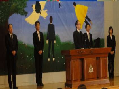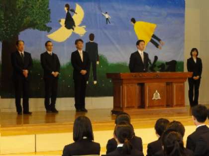 着任式 公開日 2019/04/06 更新日 2019/04/06 お知らせ 新たな6人のメンバーを加え、大きな一歩を踏み出しました。やはり、在校生の素晴らしい挨拶で、この学校に好印象を持ってくれたことは間違いなさそうです。これからも、みんなが楽しいと胸を張って言える学校であるために、努力していきましょう。