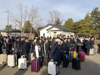 4.23 修学旅行出発集会 公開日 2019/04/23 更新日 2019/04/23 お知らせ 修学旅行1日目 朝、元気に出発集会を終え、千歳空港に向かいました。 本日の予定は、次のようになっております。 1日目 6:15 学校集合 7:00 学校出発 7:30 新千歳空港着 9:00頃 新千歳空港発 10:35頃 羽田空港着 12:00 上野公園着(昼食後、個人研修) 15:00 上野公園発 17:00 三浦海岸着・入村式